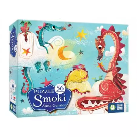 Wejdź do świata pełnego smoków! Puzzle 56 elementów dla małych fanów przygód fantasy i latających smoków. Po ułożeniu powstaje obrazek o wymiarach: 47 x 54,4 cm. Dodatkowo, w każdym pudełku znajdują się podkładki pod kubek.