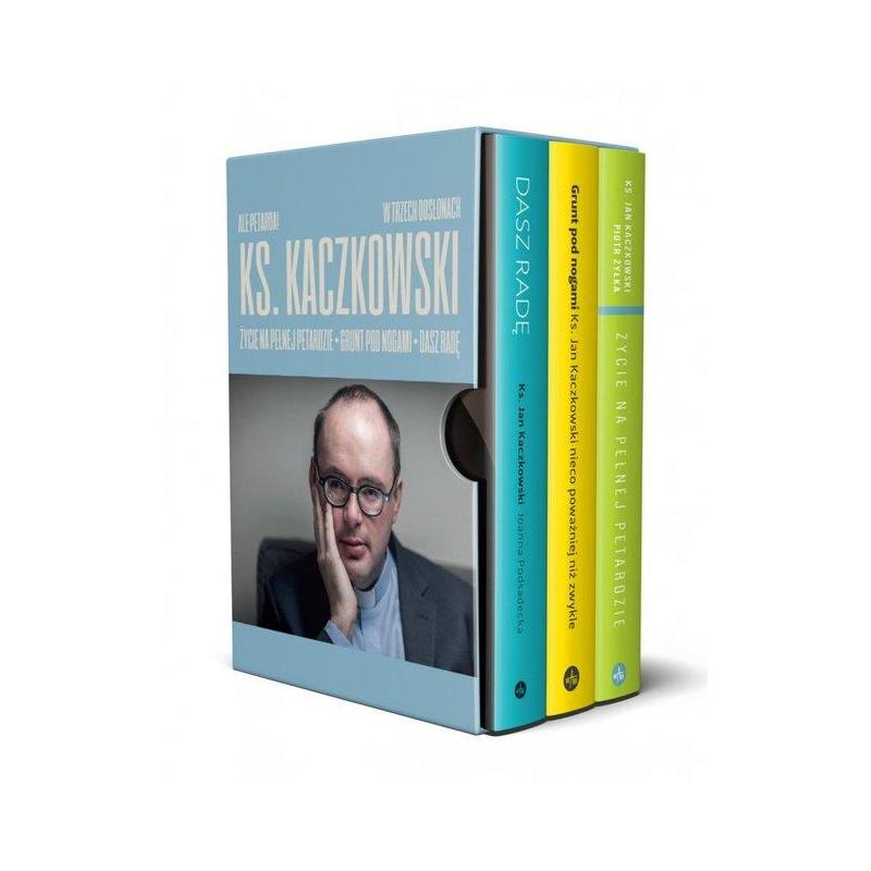 Ale petarda! Ks. Kaczkowski w trzech odsłonach Pokochała go cała Polska, zawsze żył pod prąd, wierzył w ludzi. O sprawach wielkiej wagi potrafił mówić z luzem i bez spiny. Poznaj ks. Jana Kaczkowskiego i jego życiowe przesłanie. Trzy najważniejsze książki księdza Johnego do dziś inspirują miliony i wzywają do działania. Teraz nasza kolej na życie na pełnej petardzie! ŻYCIE NA PEŁNEJ PETARDZIE Niesamowita energia, niewyczerpane pokłady optymizmu i pełna swoboda. Ulubiony ksiądz Polaków w rozmowie życia z Piotrem Żyłką. GRUNT POD NOGAMI Ksiądz Johnny zostawił po sobie nie tylko wspomnienia i rozmowy. O czym mówił w kazaniach? Co przekazywał podopiecznym w hospicjach? Jaka była jego relacja z Bogiem? DASZ RADĘ. OSTATNIA ROZMOWA Szczera, odważna i bez owijania. Ta książka to pożegnanie, ale nie ostatni rozdział.