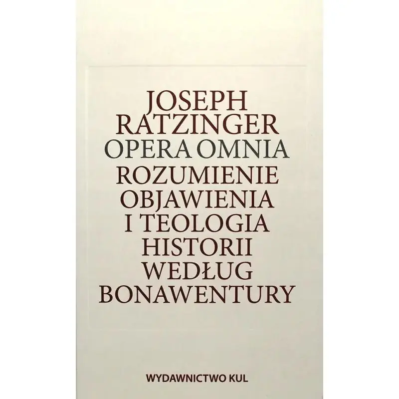 Przedmowa *[1955]§ 1. Wprowadzenie1. Problemy2. MetodaSekcja IBonawentura scholastykDział 1Pojęcie objawieniaRozdział 1Problem terminologicznyPojęcie i treść w rozumieniu objawienia§ 2. Zakres znaczeniowy słowa "revelatio"1. Granice znaczeniowe słowa "revelatio"2. Wewnętrzna treść wyobrażenia "revelatio"a) Tradent objawieniab) Proces objawienia3. Objawienie w historiia) "Revelatio" jako samoodsłonięcie się Boga w swoim Synub) Formy urzeczywistnienia objawienia w historii§ 3. Manifestatio1. Własne noetyczne znaczenie "manifestatio"2. Metafizyczne tło twierdzeń noetycznycha) "Manifestatio" w przyporządkowaniu do "światła" i "słowa"b) "Manifestatio" w kontekście problemu "theologia naturalis"3. PodsumowanieRozdział 2Istota objawienia według nauki św. Bonawentury§ 4. Mowa Boga1. Wewnątrztrynitarne uzasadnienie wydarzenia objawienia2. Proces objawiającej mowy Bogaa) Jedność czy dwoistość objawień?b) Słowo i światłoDodatek: Uwagi o problemie analogii§ 5. Wiara a historiaPoczątki teologii historii u Bonawentury1. Jedność i zmienność wiary: Relacja Starego i Nowego Testamentu2. Przeniesienie problemu na obszar Nowego Testamentu i jego historii3. Schematy teologicznohistoryczne w Komentarzu do Sentencjia) Duchowe oznaki w triadzie "natura - lex - gratia"b) Duchowe oznaki określenia relacji Testamentów§ 6. Wiara i KościółRelacja objawienia i TradycjiA. Dwie formy rozwoju wiary zgodnie z dwoma źródłami "objawienia"I. Rozwój wiary przez "revelatio"1. Historiozbawcza wykładnia sporu o Filioque a pojęcie objawieniaa) Wersja Bonawenturyb) Porównanie z Aleksandrem z Hales i z Tomaszem z Akwinuc) Uzupełniająca uwaga terminologiczna o "revelatio"d) Kontekst historyczny Bonawenturowej teorii "revelatio"2. Problem sporu o obrazy a pojęcie objawieniaII. Rozwój wiary przez zewnętrzne słowo nauczania1. Teologia jako "wyraz" wiary2. Logika językowa u Bonawentury i jej znaczenie dla pojęcia objawienia3. "Rozwój wiary" przez teologięB. Pojęcie "traditio"1. Znaczenie słów "tradere", "traditio" i "traditiones"2. Relacja Pisma i Tradycji§ 7. Wiara i doktryna: charakter czynu w objawieniu1. Przyporządkowanie "doktryny" całemu procesowi objawieniaa) Teksty św. Bonawenturyb) Pojęcia pokrewne u innych scholastyków2. Charakter czynu w prawdzie w pojęciu objawienia u Bonawenturya) "Veritas" i "virtus": charakter czynu w prawdzieb) "Fides" i "virtus": rzeczywisty charakter wiaryDodatek: Pojęcie "doctrina" w teologii historii BonawenturyInterpretacja Coll. in Hex. I 25-30 (Opera omnia V, 333n.)1. Chrystus jako centrum historii2. Rzeczywisty charakter historii: logika i historia3. Logika i teologia4. Jednorazowość i trwanie w historii. Problem "doctrina"Dział 2Ujęcie historii zbawieniaRozdział 3Relacja między historiozbawczym i metafizycznym sposobem postrzegania w teologii św. Bonawentury§ 8. "Natura" i "supernaturalis": analiza historyczno-terminologicznaA. Natura1. Porządek teoretycznonaukowya) "Nauka o naturze" w przeciwieństwie do "nauki o duchu"b) "Naturalna" nauka w przeciwieństwie do teologii2. Natura - duch i pokrewne pary przeciwstawnea) Różne pary przeciwstawne tej grupyb) "Natura" - "voluntas"3. Natura i łaskaa) Prawo naturalne i prawo łaskib) Schematy pojęciowe4. PodsumowanieDodatek: Nauka Bonawentury o "desiderium naturale"1. Źródła i treść Bonawenturiańskiej nauki o "desiderium"a) Komponenty teologiczne: Nauka o "acceptatio" i o "imago Dei"b) Komponenty filozoficzne2. Metafizyka i historia zbawienia w nauce Bonawentury o "desiderium"B. "Supernaturalis" i pojęcia pokrewne1. Teologiczne zastosowanie słów "super", "supra" itd.a) Uszeregowanie według Dionizegob) Uszeregowanie według Augustyna2. "Supernaturalis"3. Schematy pojęcioweC. Podsumowanie§ 9. Antropologia Bonawentury w konflikcie pomiędzy metafizycznym i historiozbawczym sposobem postrzegania1. Pojęcie "imago Dei"a) "Umbra - vestigium - imago"; "vestigium - imago - similitudo"b) Miejsce "imago" w duszy człowiekac) Porównanie z Tomaszem z Akwinud) Bonawentura i Tomasz w całości rozwoju nauki o "imago"2. Podobieństwo do Boga przez łaskęa) Pojęciowośćb) Podobieństwo do Boga jako dzieło Boga w człowiekuc) Miejsce podobieństwa do Boga w człowiekuDodatek: Relacja historii zbawienia i metafizyki w nauce o poznaniu Bonawentury1. Idea obrazu Bożego jako klucz do Bonawenturiańskiej nauki o oświeceniu2. "Naturalne" i "nadprzyrodzone" oświecenie u BonawenturyRozdział 4Metodologiczna podstawa obydwu form myślenia w pojęciu teologii u Bonawentury§ 10. Historyczne założenia Bonawenturiańskiego pojęcia teologii1. Zmiana znaczenia pojęcia "theologia" w podziale nauk wczesnej scholastyki1. Chrześcijaństwo jako prawdziwa filozofia2. Rozwój pojęcia teologii chrześcijańskieja) Teologia jako nauka praktycznab) Teologia jako filozofia nadprzyrodzona3. Stanowisko Hugona od św. WiktoraII. Wpływy teoretycznonaukowe spoza naukowej literatury podziału1. Naukowy program Anzelma z Canterbury2. "" Pseudo-Dionizego3. Znaczenie Piotra Lombarda4. Napływ motywów arystotelesowskich w Summie Aleksandra§ 11. Myślenie historiozbawcze i metafizycznew pojęciu teologii św. Bonawentury1. Przekształcenie Anzelmowego schematu "Credo ut intelligeam" w Sermo "Christus unus omnium magister" (V, 567-574)2. Połączenie schematu Hugonowego z motywami św. Anzelma i Pseudo-Dionizegoa) Dynamiczna jedność nauk w ideale prawdziwej mądrościb) Włączenie schematu nauki w neoplatońską koncepcję Bonawentury3. Podsumowująca ocenaII. SekcjaTeologia historii świętego Bonawentury *[= ujęcie opublikowane w 1959 roku]Przedmowa *[1959]Przedmowa do wydania amerykańskiego *[1971]Przedmowa do nowego wydania *[wł. 1991/niem. 1992]WprowadzenieRozdział 1Próba zrekonstruowania Bonawenturiańskiej teologii historii w oparciu o Collationes in Hexaemeron§ 1. Ogólne informacje o Collationes in Hexaemeron§ 2. Prowizoryczne określenie relacji między Pismem i h