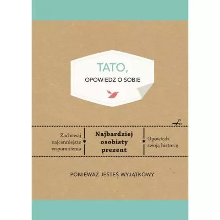 Darowując książkę „Tato, opowiedz o sobie”, dajesz swojemu ojcu więcej niż pięknie wydaną, ładnie oprawioną, nienapisaną jeszcze historię. Dajesz mu poczucie, że jest dla Ciebie ważny. Dzięki odpowiedziom na proste i wnikliwe, zawarte w dzienniku pytania dajesz możliwość spisania losów i wspomnień taty, przelania uczuć co sprawi,