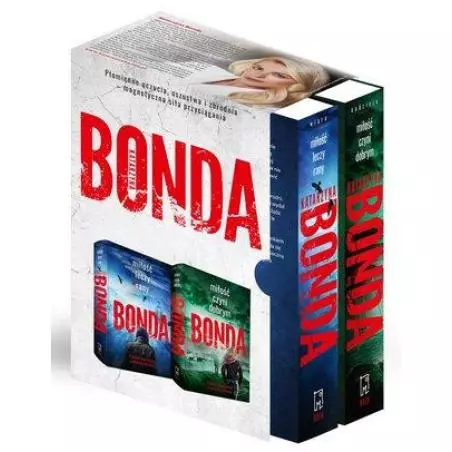 Pakiet dwóch książek Katarzyny Bondy. "Miłość leczy rany" Kryminał napisany z rozmachem, jakiego jeszcze nie widziano. Wielowątkowa powieść o walce i nadziei, zbrodni i miłości, przepełniona tajemnicą. Dwa plany czasowe i liczne wątki spaja opowieść o uczuciu Polki do uciekiniera z Kazachstanu. Igor jest znanym na Dolnym Śląsku uzdrowicielem. Skutecznie pomaga ludziom, dlatego tłumnie ciągną do niego, gdy są w potrzebie. Pojawił się w Górach Sowich kilka lat wcześniej i poznał dziewczynę, która została jego narzeczoną. Nikt jednak nie wie, co robił przedtem. Ma sekret, którego nie chce wyjawić nawet ukochanej kobiecie. W kazachskim Uralsku przed laty doszło do krwawej zbrodni. Zginęli szefowie lokalnego gangu ? synowie kasty władców. Sąd wydał na sprawcę mordu zaoczny wyrok śmierci. Starszyzna rodowa żąda dodatkowo „zemsty krwi”. Przestępcy na całym świecie szuka Interpol oraz grupa zawodowych zabójców. Czy to możliwe, że uzdrowiciel cieszący się powszechnym szacunkiem i zabójca z Kazachstanu to jedna i ta sama osoba? Czy Polce uda się uratować ukochanego od śmierci? Dziewczyna rusza w niebezpieczną drogę i bezlitośnie odsłania mroczną tajemnicę życia Igora. "Miłość czyni dobrym" Daniel Skalski marzy o zdobyciu naprawdę dużych pieniędzy i życiu w luksusie. W poszukiwaniu łatwego zarobku schodzi na drogę przestępczą, zostaje bezwzględnym oszustem. Odtąd jego codzienność to nakręcająca się spirala kłamstw i intryg, które zniszczą niejedno życie… Pierwszą ofiarą oszusta jest zauroczona nim Gabrysia – pracownica banku. To ona zdradza Skalskiemu, że czeki są weryfikowane tylko raz na pół roku. Dzięki niej Daniel poznaje także słabe elementy zabezpieczania papierów wartościowych. Skalski najpierw okrada przedstawicieli firm handlowych w Polsce, a potem rozpoczyna działania na skalę międzynarodową, obracając milionami dolarów. Przenosi się do Londynu, gdzie konsekwentnie buduje swoją markę finansisty i maklera od funduszy hedgingowych. W otoczeniu Skalskiego, który zaczyna przedstawiać się jako spadkobierca rodziny Hochbergów, pojawiają się liczni oszuści i fałszerze. Wraz z nimi i przeciwko nim Daniel konstruuje kilka przemyślnych intryg, które jeszcze pomnażają jego zasoby…
