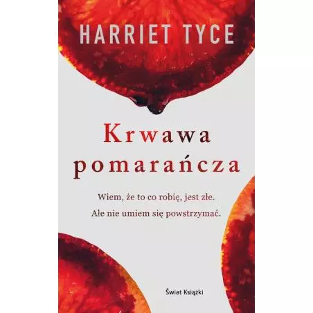 Wiem, że to co robię, jest złe. Ale nie umiem się powstrzymać. Alison ma wszystko: kochającego męża, córkę i kwitnącą karierę – właśnie będzie po raz pierwszy bronić mordercy. Dlaczego więc zaryzykuje wszystko dla kogoś, kto nie okazuje jej grama szacunku? Ktoś zna sekret Alison. Ktoś, kto chce, aby zapłaciła za swoje czyny i kto nie spocznie, dopóki nie zrujnuje jej życia. Harriet Tyce przenosi gatunek mrocznych kryminałów na wyższe poziomy. Obsesja, zemsta, pożądanie i morderstwo stanowią krwiobieg tej powieści… Obezwładniająca, przerażająca książka. Nie mogłam przestać jej czytać. Sarah Pinborough Wielkiej klasy thriller; złożone, frapujące postacie. Clare Mackintosh Harriet Tyce dorastała w Edynburgu. Studiowała literaturę angielską na Uniwersytecie Oksfordzkim oraz prawo w City University. Przez niemal dekadę pracowała w Londynie jako adwokat, broniąc kryminalistów. Uzyskała tytuł magistra na Uniwersytecie Wschodniej Anglii w dziedzinie kreatywnego pisania. Mieszka w północnym Londynie. Krwawa pomarańcza to jej debiutancka powieść.