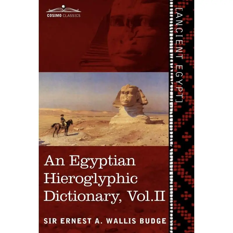 An Egyptian Hieroglyphic Dictionary, a two volume set written by Egyptian expert E.A. Wallis Budge, is quite simply one of the most comprehensive and detailed dictionaries of Egyptian hieroglyphs with English to accompany it. The series includes a detailed Introduction by the author with key words and glyphs, a bibliography of works used to help with