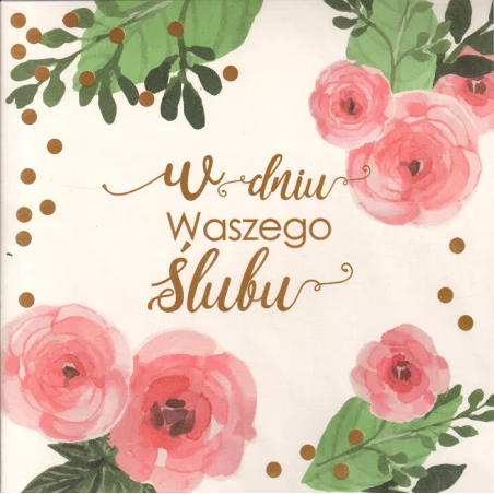 Kartka ślubna z kopertą bez życzeń to wyjątkowy sposób, aby przekazać gratulacje i życzenia nowożeńcom w piękny i elegancki sposób. Ta delikatna kartka, wykonana z najwyższej jakości papieru, emanuje subtelnym wdziękiem i przemyślanym designem. Kartka jest składana, co dodaje pewnej tajemniczości i elegancji. W środku kartki można umieścić osobiste życzenia dla nowożeńców. Bez względu na to, czy są to krótkie, ale serdeczne słowa, czy też bardziej rozbudowane wyrazy miłości, kartka bez życzeń daje swobodę wyrażenia uczuć w najbardziej autentycznym i szczerym sposób.
