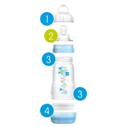 Butelka antykolkowa MAM Anti-Colic 130 ml to bezpieczne i praktyczne rozwiązanie dla noworodków już od pierwszych dni życia. Została zaprojektowana z myślą o redukcji kolek, gazów i dyskomfortu brzusznego, a dzięki specjalnemu systemowi odpowietrzania wspiera spokojne i naturalne karmienie. Butelka w wersji "boy" – z niebieskimi akcentami – wyróżnia się nowoczesnym wyglądem i ergonomicznym kształtem.