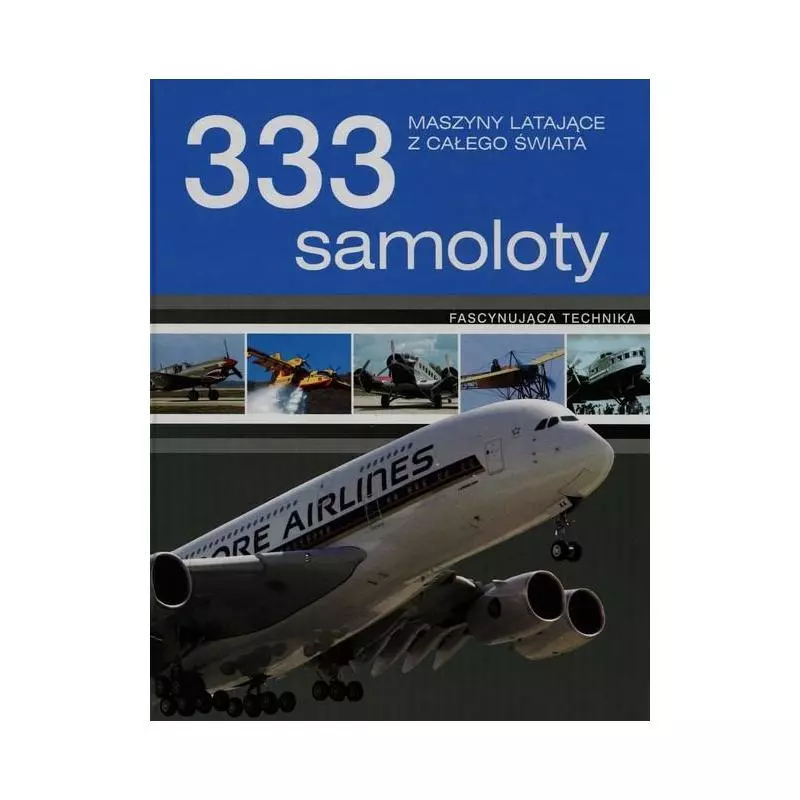 Najsłynniejsze samoloty wszech czasów. 333 samoloty to ponad trzysta wspaniałych zdjęć i dokładnych opisów dokumentujących pasjonującą historię lotnictwa cywilnego oraz wojskowego. Album przedstawia zarówno pierwsze urządzenia latające, modele zabytkowe, jak i współczesne samoloty pasażerskie oraz odrzutowce bojowe, wyposażone w najnowocześniejszą awionikę i środki łączności. Szczegółowe dane o każdym typie samolotu: kraj producenta, zastosowanie, rozpiętość, długość, napęd, maksymalna masa startowa, maksymalna prędkość oraz zasięg czynią z tego albumu interesujące kompendium wiedzy, niezbędne każdemu miłośnikowi samolotów.