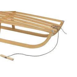 Sanki zostały zaprojektowane z myślą o najmłodszych użytkownikach. Oparcie stabilizuje pozycję dziecka, a metalowe płozy poprawiają kontrolę i płynność jazdy. Drewniany uchwyt sznurka ułatwia prowadzenie sanek przez osobę dorosłą, zwiększając komfort podczas spacerów.