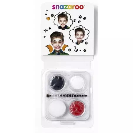 - Zestaw do makijażu zawiera 3 farbki o pojemności 2 ml ( kolory: czerwony, biały, czarny), pędzelek i małą gąbeczkę do malowania twarzy