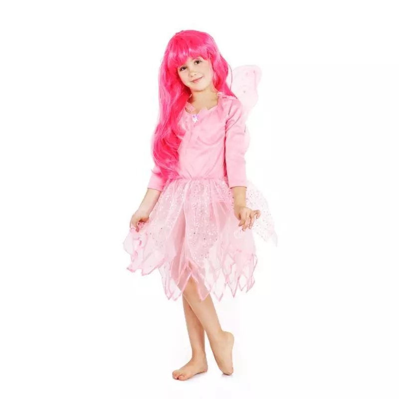 W skłąd stroju wcHodzi: różowa sukienka z długim rękawem, skrzydełka.
