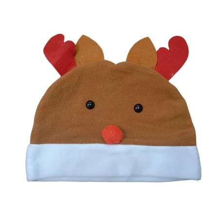 - czapka w kształcie głowy renifera z czerwonym nosem