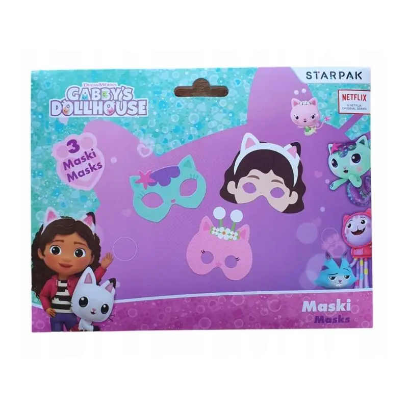 Wejdź do magicznego świata Gabi i jej kocich przyjaciół! Maski karnawałowe Koci Domek Gabi to idealna propozycja dla dzieci od 3. roku życia, które kochają przebieranki, zabawę w bohaterów oraz kreatywne odgrywanie ról. Ten kolorowy zestaw inspirowany popularnym serialem Netflixa sprawdzi się