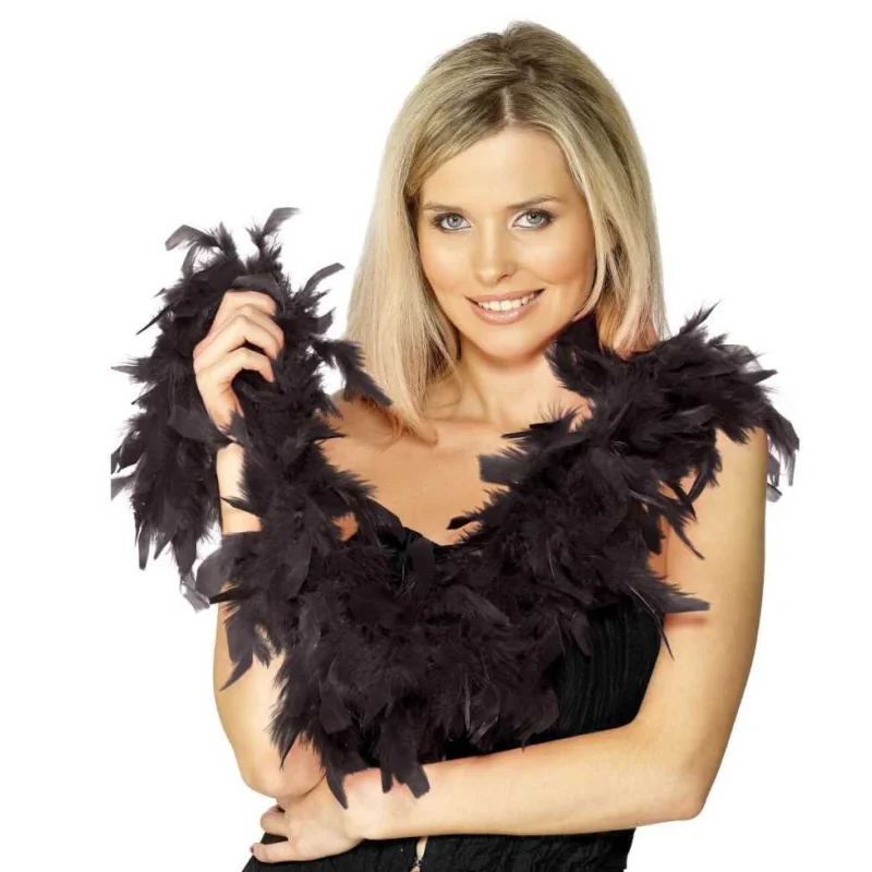 Czarne boa z piór o długości 180 cm to efektowny i stylowy dodatek, który podkreśli charakter kostiumów, stylizacji wieczorowych, scenicznych i karnawałowych. Idealne do przebieranek w stylu retro, imprez tematycznych, wieczorów panieńskich czy występów artystycznych. Delikatne i lekkie, a