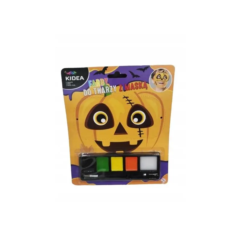 Zestaw farb do malowania twarzy z maską dynia od marki Kidea to idealna zabawa dla dzieci powyżej 6. roku życia. Zestaw zawiera wszystko, czego potrzebujesz, by stworzyć kreatywne i kolorowe maski. W skład wchodzi 6 farb do malowania twarzy w intensywnych kolorach oraz gotowa maska w