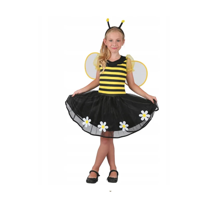Kostium pszczółki dla dziewczynki 110-120 cm to efektowny strój karnawałowy pszczółka, który sprawdzi się podczas balów przebierańców, przedstawień oraz kreatywnej zabawy w domu. Kompletny zestaw z sukienką, skrzydełkami i opaską pozwala dziecku szybko wcielić się w rolę sympatycznej pszczółki i cieszyć się wyjątkową zabawą.