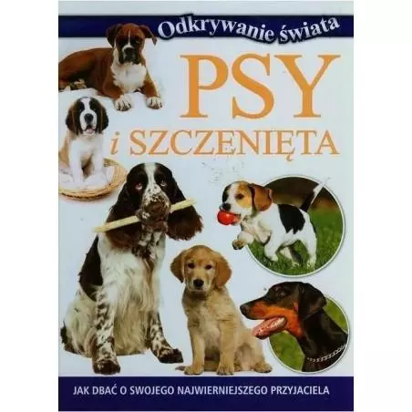 Psy i szczenięta Kupno psa to wielka odpowiedzialność. Należy się upewnić, czy twój nowy pupil jest zdrowy i odpowiedni dla ciebie, a co więcej, musisz pamiętać, że trzeba będzie o niego dbać. Znajomość różnych ras ułatwi wybór idealnego pupila dla ciebie i twojej rodziny. Gdy już będziesz wiedział, jakiej rasy psa chciałbyś mieć, pamiętaj, że przed podjęciem ostatecznej decyzji trzeba wziąć pod uwagę jeszcze kilka rzeczy: stwórzenie mu komfortowego dom, zadbanie o jego zdrowie, wychowanie pupila, by życie z nim pod jednym dachem było przyjemnością, codzienna pielęgnacja, leczenie i szczepienia. Ta bogato ilustrowana seria z pewnością zachwyci młodych czytelników. Ciekawie opracowane informacje, ciekawostki i fascynujące fakty przybliżą wiele zagadnień dotyczących otaczającego nas świata. Czytaj i odkrywaj kolejne tajemnice. W serii 'Odkrywanie świata“: Owady i pająki, Koty i kocięta, Świat dinozaurów, Psy i szczenięta, Zwierzęta zagrożone wyginięciem, Mój pierwszy atlas, Konie i kuce, Ludzkie ciało, Rekiny, Ziemia, Młode zwierzęta, Zwierzęta hodowlana, Kosmos, Wieloryby, Rekordy sportowe, Leksykon zwierząt, samochody, Rekordziści wśród zwierząt, samoloty bojowe, Piraci i rabusie, Siedem cudów świata, Węże, Wikingowie, Wulkany i trzęsienia Ziemi, Wielkie budowle i pojazdy, Huragany i tornada, Odkrycia i Wynalazki, Opowieści biblijne: Nowy Testament, Opowieści biblijne: Stary Testament.