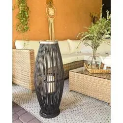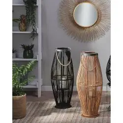 Wybierz lampion Beliani TAHITI 72 cm, jeśli chcesz dodać wnętrzu lub tarasowi ciepłego klimatu i postawić na dekorację, która łączy naturalny bambus z eleganckim czarnym wykończeniem.