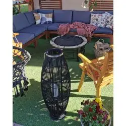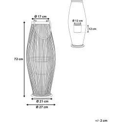 Lampion TAHITI Beliani bambusowy 72 cm czarny to pleciona latarnia dekoracyjna ze szklanym świecznikiem, która buduje ciepły klimat w salonie, na tarasie lub w ogrodzie. Naturalny bambus w czarnym wykończeniu świetnie wpisuje się w style boho, japandi, skandynawski i loft, a stabilna, okrągła podstawa oraz uchwyt do przenoszenia ułatwiają ustawienie dekoracji dokładnie tam, gdzie chcesz stworzyć nastrojowe światło.
