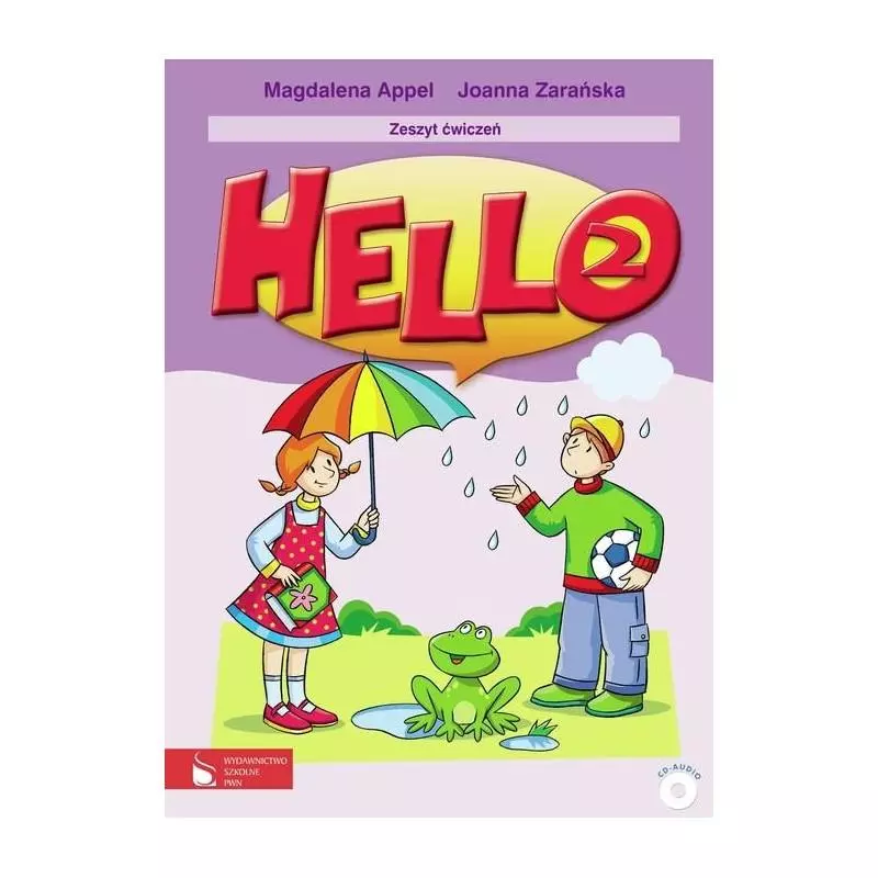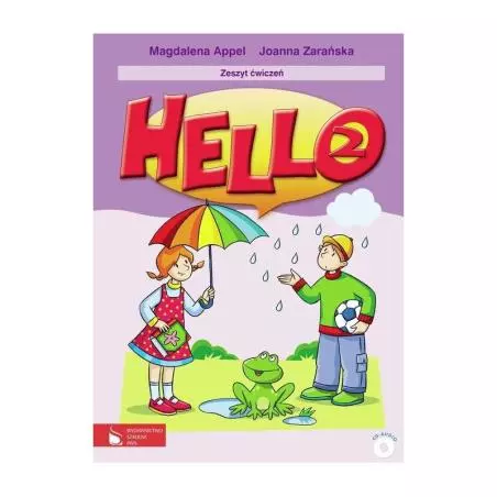 Zeszyt ćwiczeń Hello2 z płytą CD audio zawiera ćwiczenia utrwalające do każdej lekcji (w tym na rozumienie ze słuchu) oraz broszurę dla rodziców (wskazówki, jak pomóc dziecku odrobić pracę domową)..Na płycie umieszczone są nagrania do ćwiczeń oraz piosenki z Hello 2 wraz z podkładami muzycznymi.