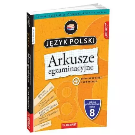 ARKUSZE EGZAMINACYJNE DO JĘZYKA POLSKIEGO służą przygotowaniu ósmoklasisty do obowiązkowego egzaminu na zakończenie szkoły podstawowej. Składają się dwóch podstawowych części. W pierwszej jest pięć testów opracowanych przez Centralną Komisję Egzaminacyjną (w tym: główne, dodatkowe i próbne), które pisali uczniowie w latach 2021 i 2022. (Z powodu pandemii egzaminy ósmoklasisty w okresie 2021-2024 opracowane były i będą na podstawie zawężonych – w stosunku do podstawy programowej – wymagań egzaminacyjnych).
