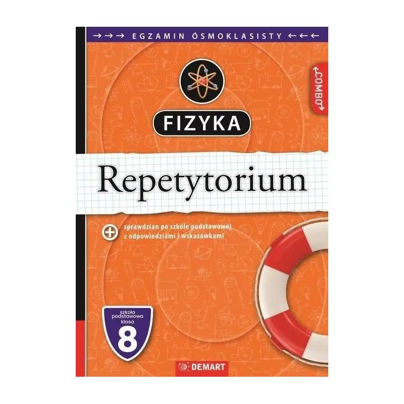 Repetytorium do fizyki jest przeznaczone dla uczniów klas VII-VIII szkoły podstawowej i może zastąpić obydwa podręczniki (do siódmej i ósmej klasy). Uwzględnia wszystkie ważne tematy z podstawy programowej. Wiedza teoretyczna, czyli prawa, procesy i definicje są punktem wyjścia do wyjaśnienia "krok po kroku", jak należy je stosować w zadaniach na konkretnych przykładach. Przy każdym zagadnieniu znajdują się zadania do samodzielnego wykonania przez ucznia, a odpowiedzi do nich celowo zapisano "do góry nogami" po to, żeby uczeń najpierw sam spróbował je wykonać i dopiero potem weryfikował poprawność. Jeden temat jest przedstawiony na dwóch sąsiadujących ze sobą i jednocześnie widocznych stronach. Takie rozplanowanie treści jest nieprzypadkowe - chodzi o to, by uczeń tę swoistą "ściągawkę" wyjaśniającą i podsumowującą prezentowane zagadnienie i mógł wszystko od razu ogarnąć wzrokiem. Łatwo też odszukać najważniejsze, wyróżnione graficznie, hasła. Wiele zagadnień wyjaśniają Na końcu repetytorium jest sprawdzian (wraz z omówieniem i rozwiązaniami) wykonany na podstawie wzorcowych testów Centralnej Komisji Egzaminacyjnej. Podpowie kandydatowi do szkoły średniej czy dobrze opanował materiał z przedmiotu na poziomie szkoły podstawowej. To znakomita pomoc, którą uczniowie mogą wykorzystywać samodzielnie, a także z udziałem dorosłych.