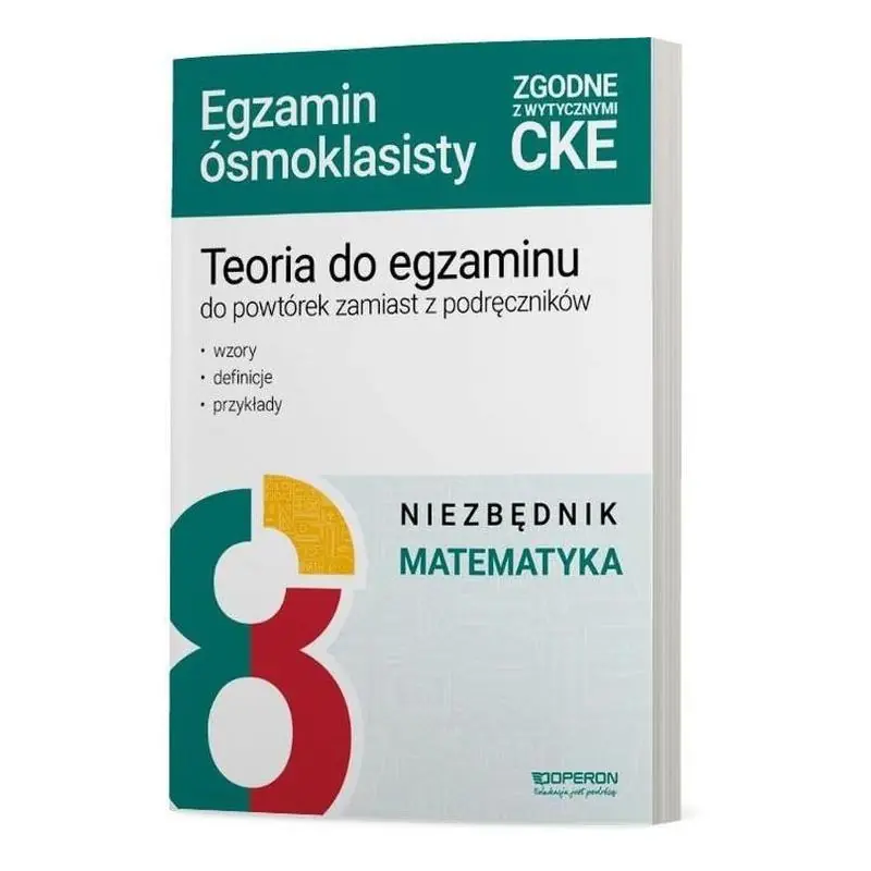 Teoria do egzaminu. Egzamin ósmoklasisty 2025. Matematyka Do powtórek zamiast z podręczników Nie pamiętasz definicji, wzoru albo jakiejś innej szczegółowej informacji? Nie masz już dostępu do swoich podręczników? Niezbędne wiadomości, potrzebne do rozwiązywania zadań na egzaminie ósmoklasisty z matematyki znajdziesz w publikacji „Teoria