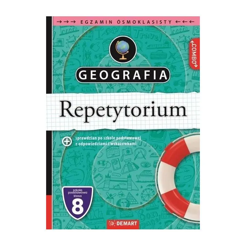 Repetytorium z geografii składa się z dwóch części: powtórzeniowej i sprawdzającej (z testem). Znakomicie może zastąpić wszystkich pięć podręczników (z klas IV-VIII), gdyż obejmuje wszystkie ważne tematy uwzględnione w podstawie programowej. Każdy temat jest tak rozplanowany, żeby był od razu do ogarnięcia wzrokiem (na dwóch sąsiednich i jednocześnie widocznych stronach). Ma być rodzajem "ściągawki" wyjaśniającej i podsumowującej prezentowane zagadnienie krok po kroku. Co jest oczywiste, wiele zagadnień ilustrują i wyjaśniają mapy oraz poglądowe grafy, schematy, rysunki i fotografie. Tłumaczenie zagadnień zwykle sprawiających trudności, np. takich jak posługiwanie się skalą i dokonywanie obliczeń, posługiwanie się współrzędnymi geograficznymi czy też obliczanie czasu strefowego lub słonecznego, wyjaśniane jest "krok po kroku" na konkretnych przykładach. Objaśnienia mają charakter rozumowania przyczynowo-skutkowego. Na końcu tematu są pytania, do których odpowiedzi zapisano "do góry nogami", by skłonić ucznia do samodzielnych odpowiedzi i dać mu możliwość sprawdzenia poprawności rozumowania. Na końcu repetytorium jest sprawdzian (wraz z omówieniem i rozwiązaniami) wykonany na podstawie wzorcowych testów Centralnej Komisji Egzaminacyjnej. Podpowie kandydatowi do szkoły średniej czy dobrze opanował materiał z przedmiotu na poziomie szkoły podstawowej. To znakomita pomoc, którą uczniowie mogą wykorzystywać samodzielnie, a także z udziałem dorosłych.