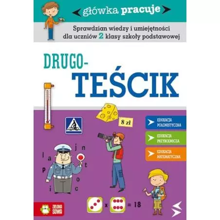 „Drugoteściki” to zbiór 3 testów, zawierających po kilkadziesiąt zadań, sprawdzających wiedzę i umiejętności uczniów II klasy szkoły podstawowej. Wszystkie ćwiczenia są zgodne z obowiązującą podstawą programową i dotyczą trzech edukacji: polonistycznej, matematycznej i przyrodniczej. Zadania sprawdzają umiejętności dziecka w zakresie: czytania, myślenia matematycznego, komunikowania się w języku ojczystym, wyszukiwania, porządkowania i wykorzystywania informacji z różnych źródeł. Na końcu każdego testu znajdują się rozwiązania zadań.