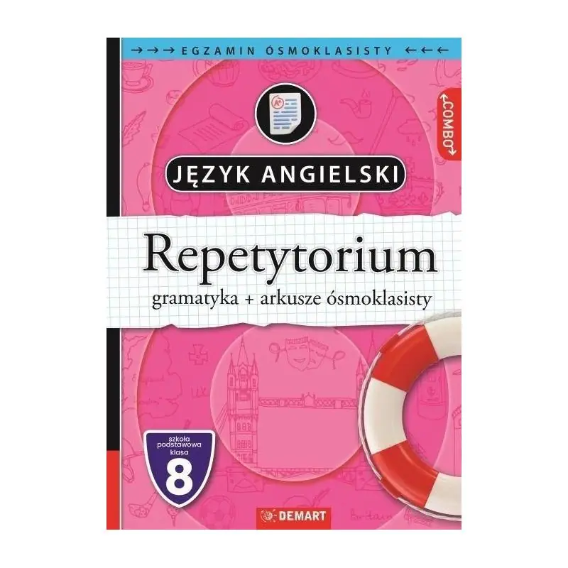 Repetytorium zawiera 40 tematów, które omawiają wszystkie wymagane w szkole podstawowej zagadnienia gramatyczne. Dlatego świetnie może posłużyć nie tylko przygotowaniu ósmoklasisty do obowiązkowego egzaminu końcowego, ale także w trakcie nauki - w każdej klasie, począwszy nawet od czwartej, żeby przygotować się do powtórzeń, klasówek i sprawdzianów. W części powtórzeniowej są m. in. omówienia czasów, trybów, mowy zależnej, części mowy i zdania oraz budowy i łączenia zdań. Każdy temat ilustrują proste i bardziej złożone przykłady. W części sprawdzającej są zadania z odpowiedziami do części gramatycznej. Niektóre weryfikują kilka zasad gramatycznych równocześnie, co znakomicie podnosi poziom ich zastosowania w mowie. Są też specjalne zestawy zadań weryfikujących słownictwo (14 kategorii tematycznych oraz zadania typu hangman bazujące na grze towarzyskiej wisielec). W ostatniej części znajdują się najaktualniejsze testy egzaminacyjne z 2023 i 2024 roku, z odpowiedziami.
