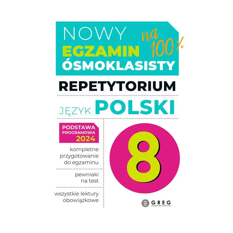 Przedstawiamy najlepszą książkę dla każdego ósmoklasisty, który chce szybko, sprawnie i skutecznie przygotować się do egzaminu kończącego szkołę podstawową. Książka zawiera cały wymagany na egzaminie materiał - omówienia lektur obowiązkowych z klas 7-8, dział dotyczący form pisemnych z przykładami, jak powinny wyglądać wypracowania,