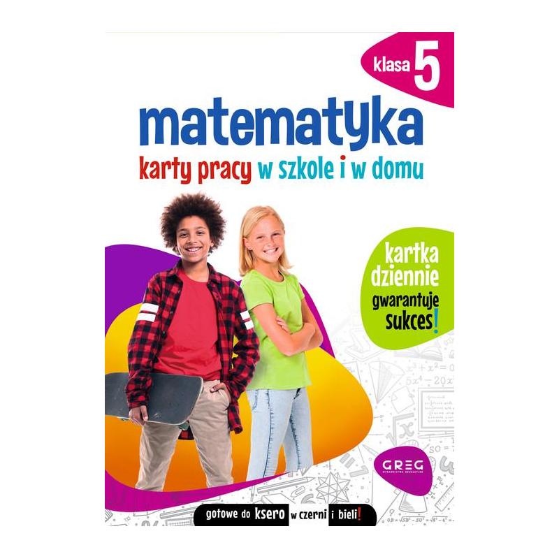 Jedna karta dziennie gwarantuje sukces!Przedstawiamy kolejną książkę z bestsellerowej serii Wydawnictwa GREG: Matematyka. Karty pracy w szkole i w domu - klasa 5. To zbiór ciekawych i zgodnych z podstawą programową ćwiczeń, dzięki któremu każdy piątoklasista szybko i bez stresu opanuje każde matematyczne zagadnienie! Kluczem do sukcesu na każdym polu jest zawsze systematyczność - rozwiązywanie nawet kilku zadań dziennie może zrobić ogromną różnicę i znacząco poprawić oceny!Za pan brat z królową naukMatematyka często bywa tym przedmiotem, który sprawa uczniom dużą trudność. Poziom jego zaawansowania znacząco zwiększa się w każdej kolejnej klasie. Warto więc ułatwić uczniowi szkolne życie i zaprezentować mu karty pracy od Wydawnictwa GREG - książkę przygotowaną przez doświadczone matematyczki i nauczycielki, które przez lata pedagogicznej działalności doskonale poznały potrzeby uczniów. Oprócz samych zadań książka zawiera też liczne podpowiedzi, definicje i wskazówki. Wszystko po to, by matematyka przestała być tajemnicą!80 stron zadań = matematyka bez stresuW kartach znajdują się zadania, które są po pierwsze - zgodne z podstawą programową, po drugie - w naturalny sposób nawiązują do wiedzy z klasy czwartej i rozwijają ją i po trzecie - są interesujące, wciągające i szybko staną się nie smutnym obowiązkiem, ale wyzwaniem podejmowanym z przyjemnością! Zakres tematyczny kart pracy obejmuje wszystkie wymagane zagadnienia. Zadania są podobne do tych, które uczeń może spotkać na lekcjach i sprawdzianach. W książce znajdują się m.in. zadania dotyczące:liczb dodatnich i ujemnych, działań pisemnych, ułamków zwykłych i dziesiętnych, potęgowania, geometrii, skali, zegara i kalendarza, brył.Wśród kart pracy znalazło się również kilka sprawdzianów, które pomogą sprawdzić wiedzę z poprzednich zadań. Ogromną zaletą książki są również rozwiązania wraz z obliczeniami, dostępne on-line pod kodem QR znajdującym się w książce.Wygodna praca z książkąAtutem całej serii kart pracy od Wydawnictwa GREG jest ich nowoczesna i czytelna szata graficzna i wygodna forma książki. Każda strona jest kolorowa, zadania są estetycznie rozłożone, towarzyszą im grafiki, a gdzie to wymagane - tabele, rysunki i wykresy. Każdemu zadaniu towarzyszy miejsce na rozwiązania, odpowiednio duże, by zmieściły się tam wszystkie obliczenia.Strony w kartach pracy mają u góry perforację, która umożliwia łatwe wyrwanie strony, którą można następnie podać dziecku do rozwiązania. Taka forma nauki sprawia, że dziecko nie czuje się przytłoczone ilością materiału i z radością siada do nauki. Ten tryb pracy jest również polecany przez nauczycieli, którzy wykorzystują karty pracy na lekcjach w szkole. W takim przypadku przydaje się inna cecha książki - layout został zaprojektowany tak, by dało się go czytelnie skserować w czerni i bieli.Najlepszy wybór dla piątoklasisty!Na rynku jest dostępnych wiele książek dla uczniów szkoły podstawowej. Aby osiągnąć najlepsze wyniki i nie kojarzyć już nauki ze stresem, warto sięgnąć po sprawdzoną markę - Wydawnictwo GREG tworzy książki aktualne, zgodne z podstawą programową, estetyczne i wygodne w użytkowaniu. Setki dobrych opinii, płynących zarówno od uczniów, jak i od nauczycieli, to najlepszy dowód na ich wartość.
