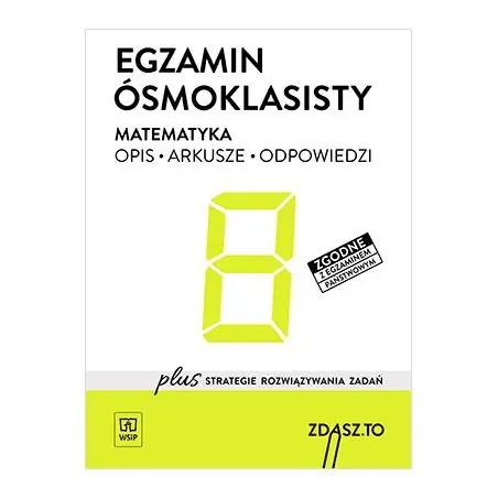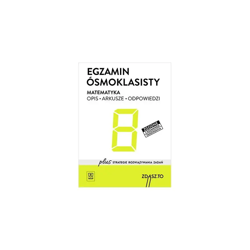 Egzamin ósmoklasisty. Matematyka. Opis. Arkusze. Odpowiedzi. ZDASZ.TO jest publikacją, w której oprócz przykładowych arkuszy egzaminacyjnych w przystępny sposób opisano zasady i przebieg egzaminu ósmoklasisty – to ułatwi uczniowi oswojenie się z egzaminem i uporządkowanie wiedzy na jego temat. Publikacja zawiera opis formuły i założeń egzaminu, próbne arkusze egzaminacyjne oraz odpowiedzi do zadań. Unikatowym materiałem jest dodatek plus: Strategia rozwiązywania zadań. Zawiera on wskazówki dotyczące rozwiązywania zadań otwartych, proces ten pokazano na podstawie prac uczniów. Ponadto zaprezentowano przykłady, jak z powodzeniem radzić sobie z zadaniami zamkniętymi. Publikacja zawiera: Zestaw 10 arkuszy egzaminacyjnych – łącznie ponad 200 zadań odnoszących się do wszystkich treści zawartych w podstawie programowej, które obowiązują na egzaminie. Dzięki arkuszom uczeń może sprawdzić stopień opanowania wiedzy i umiejętności niezbędnych na egzaminie oraz wyćwiczyć rozwiązywanie zadań w wyznaczonym czasie – 100 min. Informacja zwrotna dzięki zamieszczonym odpowiedziom – do każdego arkusza dodano klucz odpowiedzi do zadań zamkniętych oraz przykładowe rozwiązania i odpowiedzi do zadań otwartych, które pozwolą uczniowi szybko zorientować się, co jeszcze musi powtórzyć. Analiza rozwiązań zadań otwartych pozwala nie tylko weryfikować poprawność swoich rozwiązań, ale także uczyć się innych sposobów rozwiązywania zadań. Schematy oceniania rozwiązań zadań – są pomocą, dzięki której uczeń dowie się, na co zwrócić uwagę podczas zapisywania rozwiązań, aby uzyskać jak najwięcej punktów na egzaminie. Struktura każdego arkusza jest zgodna z założeniami Centralnej Komisji Egzaminacyjnej – publikacja zawiera zestawy arkuszy egzaminacyjnych zgodnych z wymogami opisanymi w Informatorze o egzaminie ósmoklasisty z matematyki opublikowanym przez Centralną Komisję Egzaminacyjną.