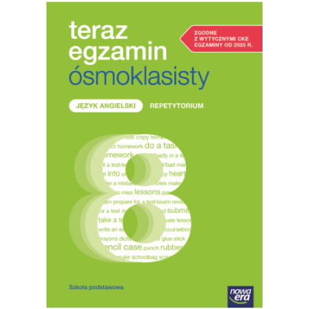 Bestsellerowe repetytorium „Teraz egzamin ósmoklasisty. Język angielski” to sprawdzona pomoc w przygotowaniach do egzaminu ósmoklasisty z języka angielskiego. Pozwala uporządkować materiał, powtórzyć słownictwo i gramatykę, a przede wszystkim nabrać biegłości w rozwiązywaniu zadań egzaminacyjnych – zarówno zamkniętych, jak i