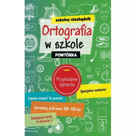 Wszystkie zagadnienia z polskiej ortografii w jednym wydaniu. Bogato ilustrowana pozycja z mnóstwem przykładów i wyjątków. W przystępny sposób omawia zagadnienia ortograficzne, które są wymagane w szkole. Bonus: przykładowe dyktanda!