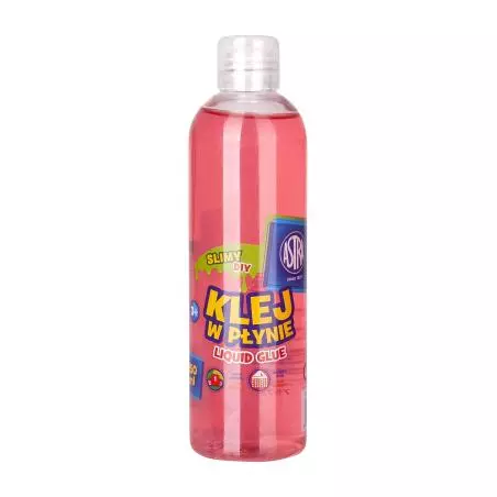 Płynny klej w kolorze różowym w zakręcanej butelce.