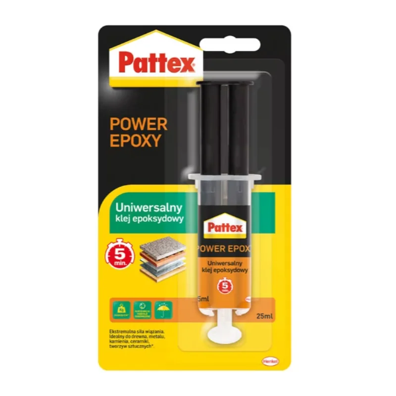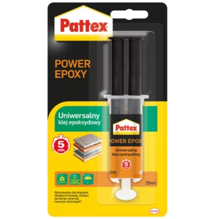 PATTEX POWER EPOXY 5MIN 25ML to szybkoschnący, przezroczysty klej epoksydowy o uniwersalnym zastosowaniu. Zapewnia trwałe i estetyczne łączenie większości materiałów, odporne na wodę i czynniki zewnętrzne. Idealny do zastosowań domowych i profesjonalnych.
