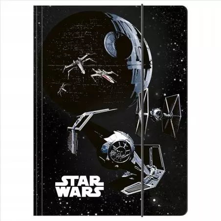Teczka kartonowa zamykana na gumkę, ozdobiona motywami Star Wars.