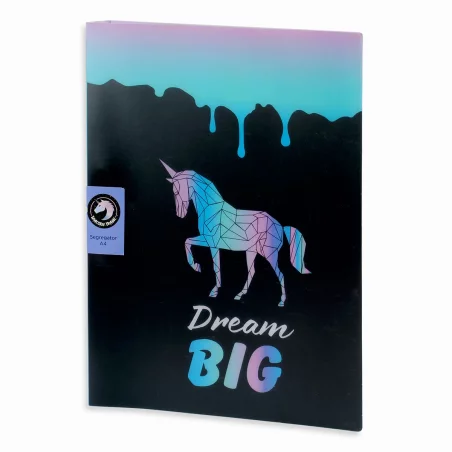 - tęczowy jednorożec na środku oraz napis: "Dream BIG"