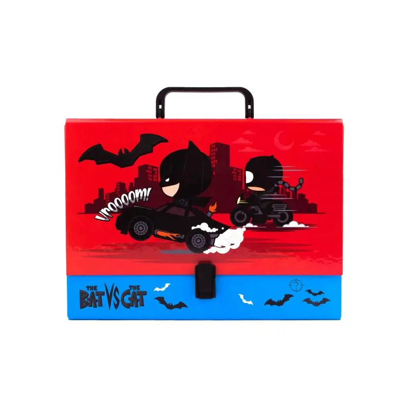 Teczka A4 z rączką Beniamin Batman łączy funkcjonalność z atrakcyjnym wzorem, który motywuje dzieci do utrzymywania porządku w dokumentach i pracach szkolnych. Wytrzymały materiał i lekka konstrukcja sprawiają, że jest wygodna i trwała w codziennym użytkowaniu.