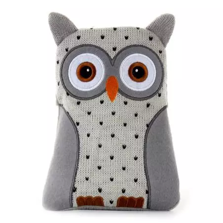 - posiada wyszywany pokrowiec w kształcie sowy, zapinany na rzep