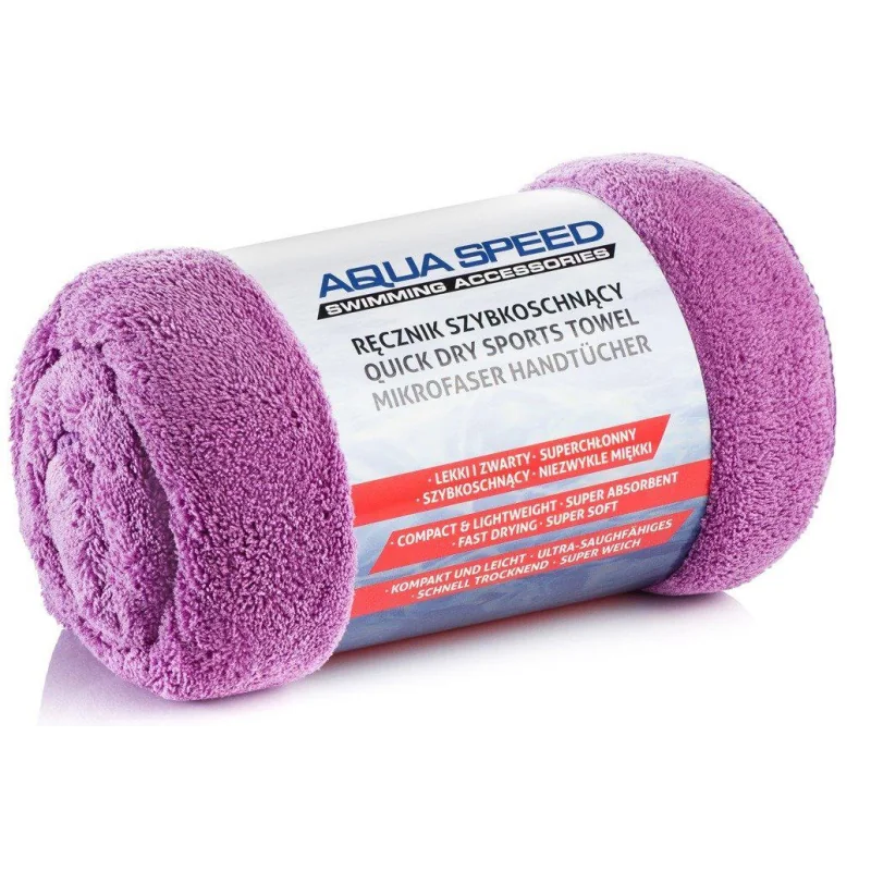 Aqua-Speed Dry Coral 50x100 cm to szybkoschnący ręcznik sportowy, stworzony z myślą o osobach aktywnych. Wykonany z nowoczesnej mikrofibry, jest niezwykle lekki, chłonny i kompaktowy, co czyni go idealnym wyborem na basen, siłownię, treningi, podróże i wakacje. Fioletowa wersja kolorystyczna