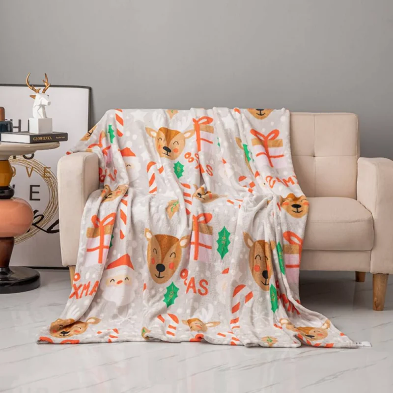 Szary świąteczny koc z mikrofibry Santa o wymiarach 150 x 200 cm to idealny dodatek do zimowych wieczorów i świątecznego wystroju wnętrz. Wykonany z miękkiej, przyjemnej w dotyku mikrofibry, zapewnia komfort, ciepło i przytulny klimat. Świąteczny wzór z motywem Mikołaja wprowadza wyjątkową atmosferę i doskonale sprawdzi się jako element dekoracyjny na kanapie, łóżku lub fotelu.
