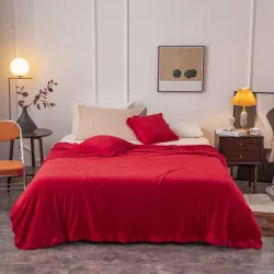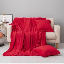Koc Ruffly 200x220 cm w intensywnym czerwonym kolorze z dekoracyjną falbanką to stylowy i funkcjonalny dodatek do każdego wnętrza. Wykonany z miękkiego, przyjemnego w dotyku materiału, pełni funkcję zarówno komfortowego okrycia, jak i eleganckiej narzuty na łóżko lub sofę. Romantyczne falbanki nadają mu wyjątkowego uroku i kobiecego charakteru, czyniąc go idealnym elementem dekoracyjnym sypialni lub salonu.