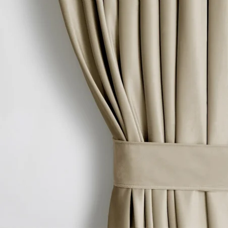 Zasłona welwetowa RESTILO 140x245 beż to wysokiej jakości dekoracja okienna, która łączy elegancję welwetu z funkcją zaciemniania pomieszczeń. Dzięki przelotkom ułatwiającym zawieszenie i w komplecie dołączonej