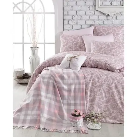 Komplet pościeli FARO SquArt Ranforce to elegancki zestaw obejmujący wysokiej jakości bawełnianą pościel oraz dopasowany kolorystycznie koc z frędzlami. Zestaw zapewnia wysoki komfort użytkowania, trwałość oraz atrakcyjny wygląd, dzięki czemu świetnie sprawdzi się w każdym wnętrzu. Tkanina Ranforce gwarantuje przewiewność i delikatność,