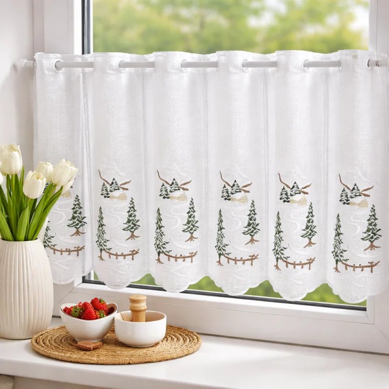 Zazdrostka Śnieżna Droga z choinkami 1 panel 16 cm to urokliwa dekoracja okienna, która wprowadza do wnętrza świąteczny klimat, przytulność i subtelny zimowy akcent. Motyw choinek oraz nawiązanie do zimowej scenerii sprawiają, że ta zazdrostka świąteczna doskonale prezentuje się w kuchni, jadalni, salonie lub innych pomieszczeniach, które