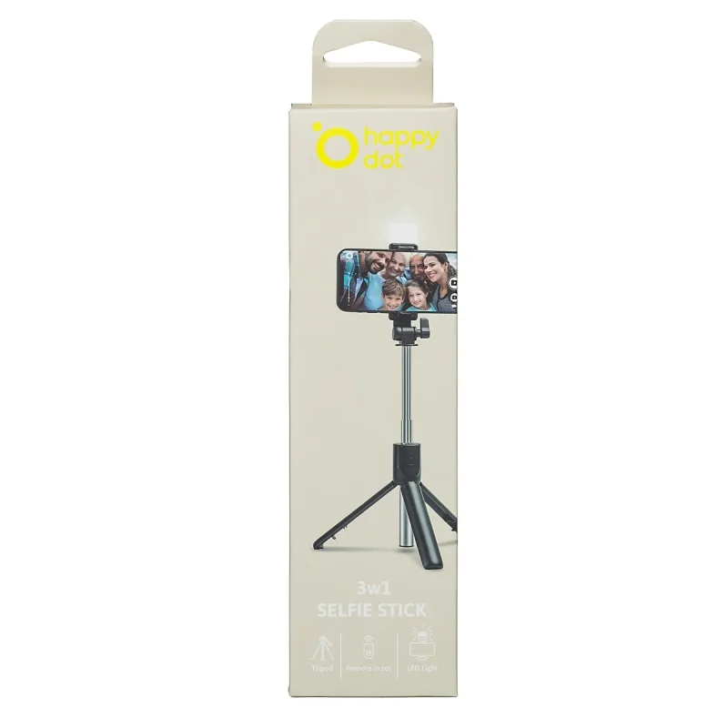 - Kijek do selfie z bluetooth, funkcją statywu, pilotem i wbudowaną lampką LED