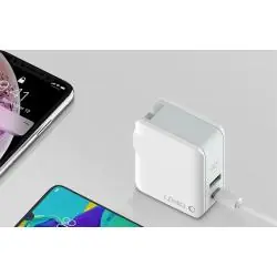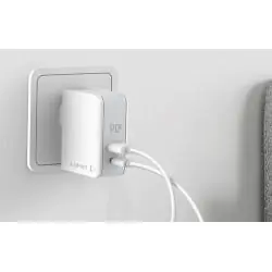Ładowarka sieciowa LDNIO A4403C to kompaktowe i wydajne rozwiązanie, które umożliwia jednoczesne ładowanie dwóch urządzeń – dzięki portom USB-A oraz USB-C. Oferuje maksymalną moc 30 W i obsługuje szybkie ładowanie, skracając czas uzupełniania energii nawet o połowę. W zestawie znajduje się kabel USB-C – USB-C, dzięki czemu od razu