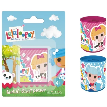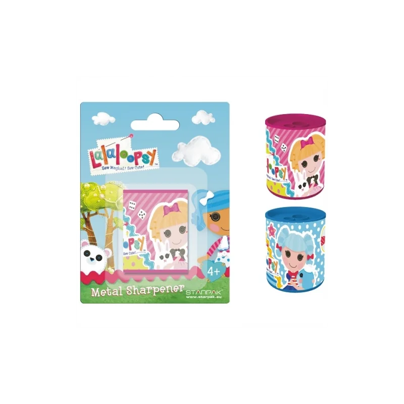 Temperówka z kolekcji Starpak z licencją Lalaloopsy. Temperówka z zasobnikiem na strużyny, w formie lśniącego kubeczka z lakierowanej blachy zdobionego kolorową grafiką. 2 ostrza do ostrzenia kredek i ołówków standardowych, oraz w rozmiarze jumbo. Dostępna w dwóch wersjach graficznych. Zapoznaj się również z innymi produktami Starpak z licencją Lalaloopsy Produkt pakowany na blistrze. Przeznaczony dla dzieci w wieku 3 . Wymiary opakowania wys.x szer. x gł. cm 14,5x11x4.