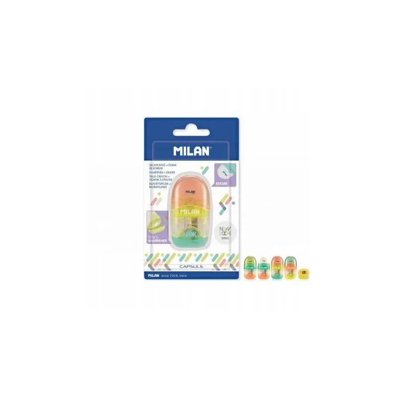 Temperówka z gumką Milan Capsule New Look to wysokiej jakości narzędzie do ostrzenia ołówków oraz kredek, które łączy w sobie funkcjonalność ostrzałki i praktycznej gumki do ścierania. Produkt został zaprojektowany z myślą o użytkownikach szkolnych,