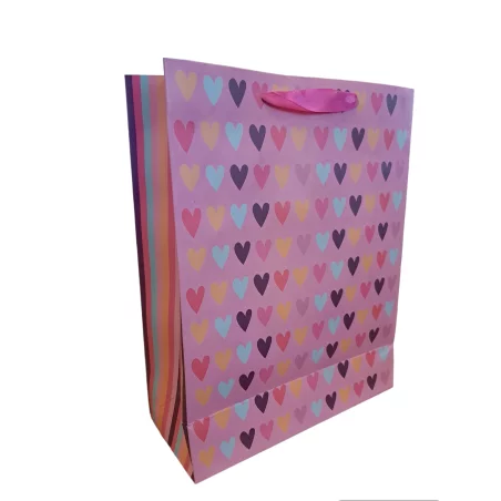 orebka wykonana jest z wysokiej jakości materiałów, co gwarantuje trwałość i solidność. Dzięki odpowiedniemu rozmiarowi pomieści niezbędne drobiazgi i dodatki, idealnie sprawdzając się jako prezent na różne okazje. Ta urocza, różowa torebka prezentowa w serca kolorowe na pewno rozbawi i ucieszy osobę, którą chcesz obdarować.